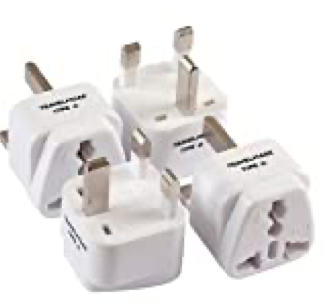 If you don’t want to bring a multi-country model, nearly every domestic plane’s plugs accept both UK and Euro plugs. Here are FOUR UK plugs for $8: