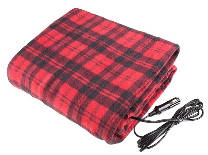 Available in five different plaids and solid blue, the blanket is designed specifically for your car, truck, and RV; simply plug it into the cigarette lighter.