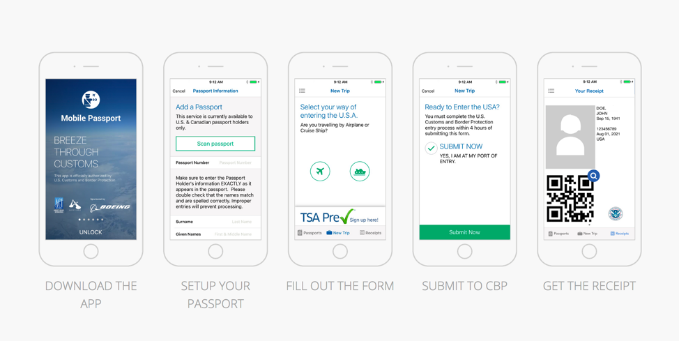 How does it work? After downloading the app, enter your passport information (and that for up to three family members, too), along with a selfie.