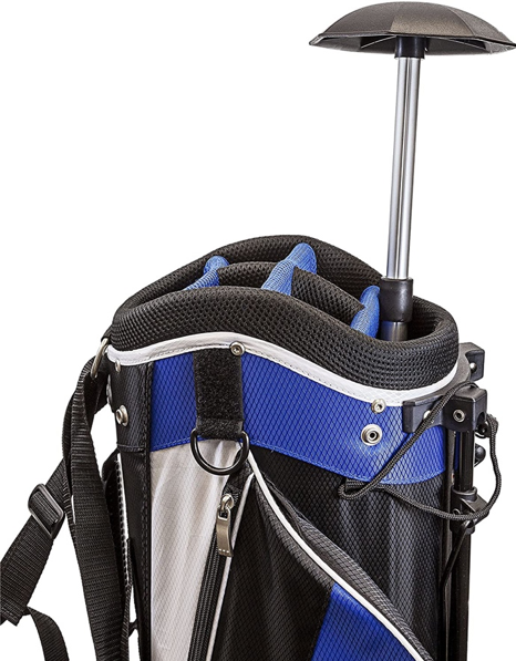 This #1-selling golf bag on Amazon is a great option if you’re looking for something that’s easier to carry around than a hard-sided bag. It’s lightweight (about six pounds) and comes with skate wheels attached to a rubber base. It has a spacious main compartment, separated section for golf shoes, and a shoulder strap/multiple handles.