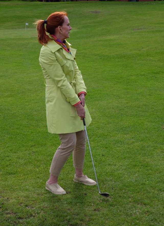 Then it was on to play twelve holes. While Husband is a good golfer, I’m adept at the other sport in which you hit a small white ball with a long stick on grass—from the back of a galloping horse. Golf has always seemed a tad too slow and quiet for me, so I decided to bring a little polo to that day’s game.