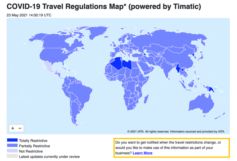 Click on your transit and final destination countries to make sure you’ll be able to take your trip as planned and keep up on any testing requirements. (Note: It’s worth checking the map the days before and up to departure; the rules really are in flux.)