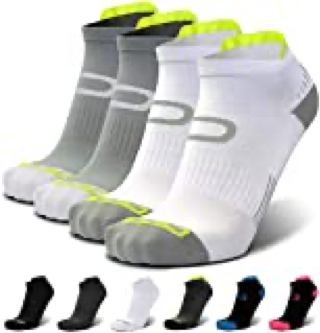 These socks combine compression fabric with kinesiology taping to reduce leg pain and increase blood flow. They have a compression level of 20-30 mmHg plus a shock absorption effect that also helps reduce swelling. I found them pretty tight but pretty effective, too.
