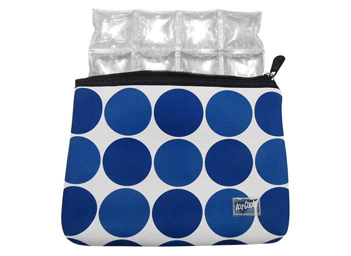 These bags keep those things you don’t want exposed to the heat—phone, snacks, medications, lipstick—shaded and cool. Simply freeze the inserts and place them in the lining of the bag.