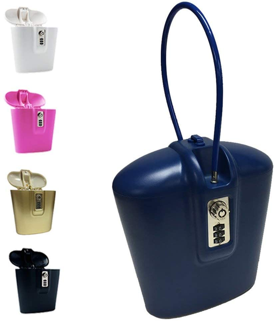 Secure your valuables—phone, keys, wallet—to your beach chair, sunshade, or cooler with this portable lockbox. Access is via key or three-digit custom combination code. The flexible steel cable is adjustable and there are four colors to choose from.