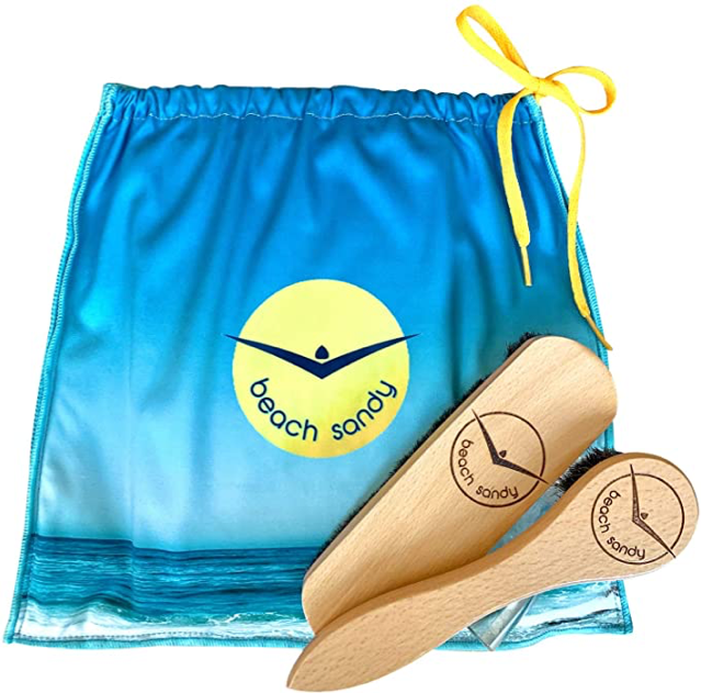 This brush set removes sand from your body and belongings after a long day at the beach so you won’t track anything back to your car or house. A microfiber towel bag is included.