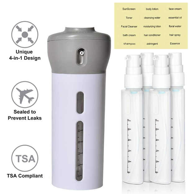 This 4-in-1 liquid dispenser is the TSA-friendly solution to your carry-on needs.