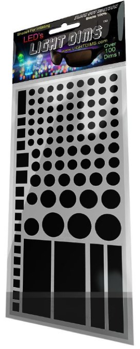 Solution: Peel and stick a Light Dim over the offending beams and voila! the offending lights are dimmed. They block 50-80 percent of the light and don’t leave a sticky residue when you remove them. They even have a blackout version, which blocks 100 percent of the light.