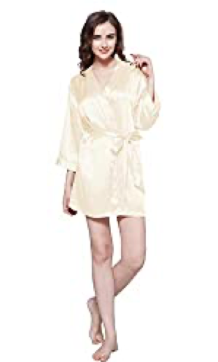 Splurge ($179): The LilySilk short robe is made of real silk, with three-quarter sleeves, banded cuffs, and matching belt. Nine colors. The ultimate when you want to travel in style.